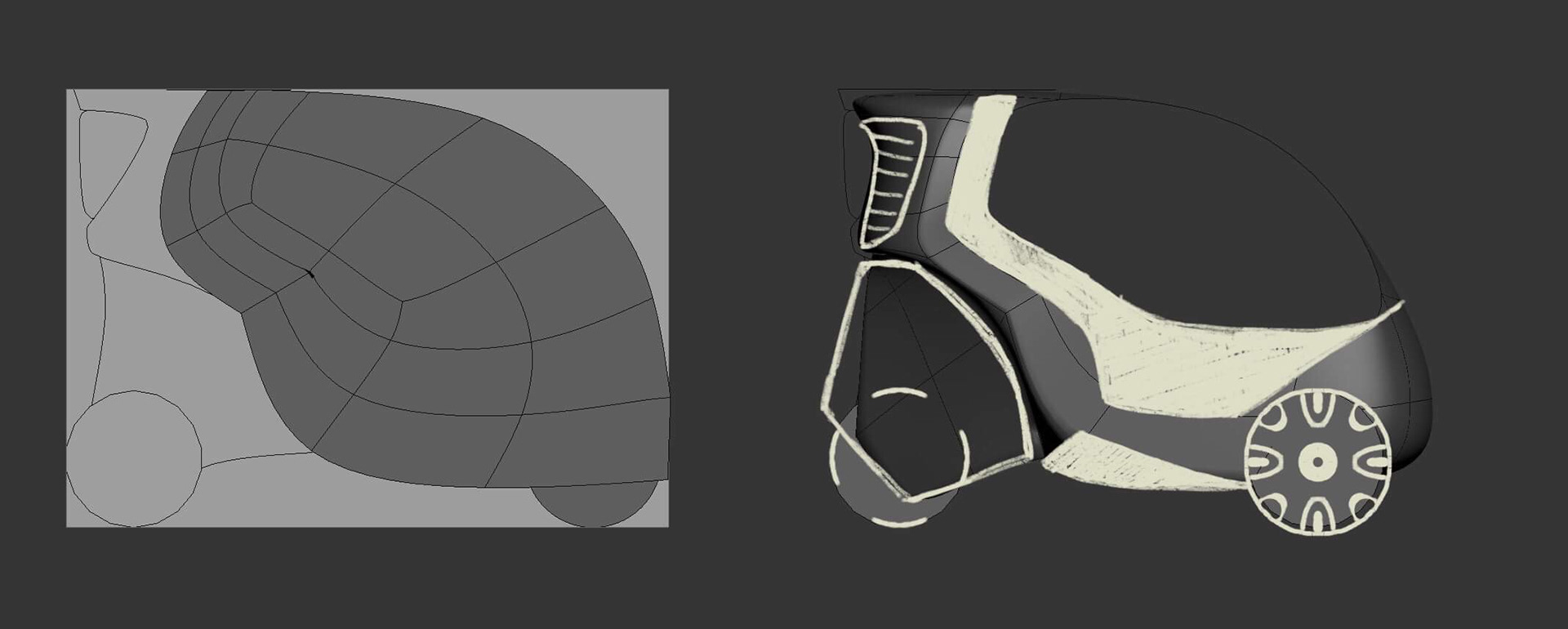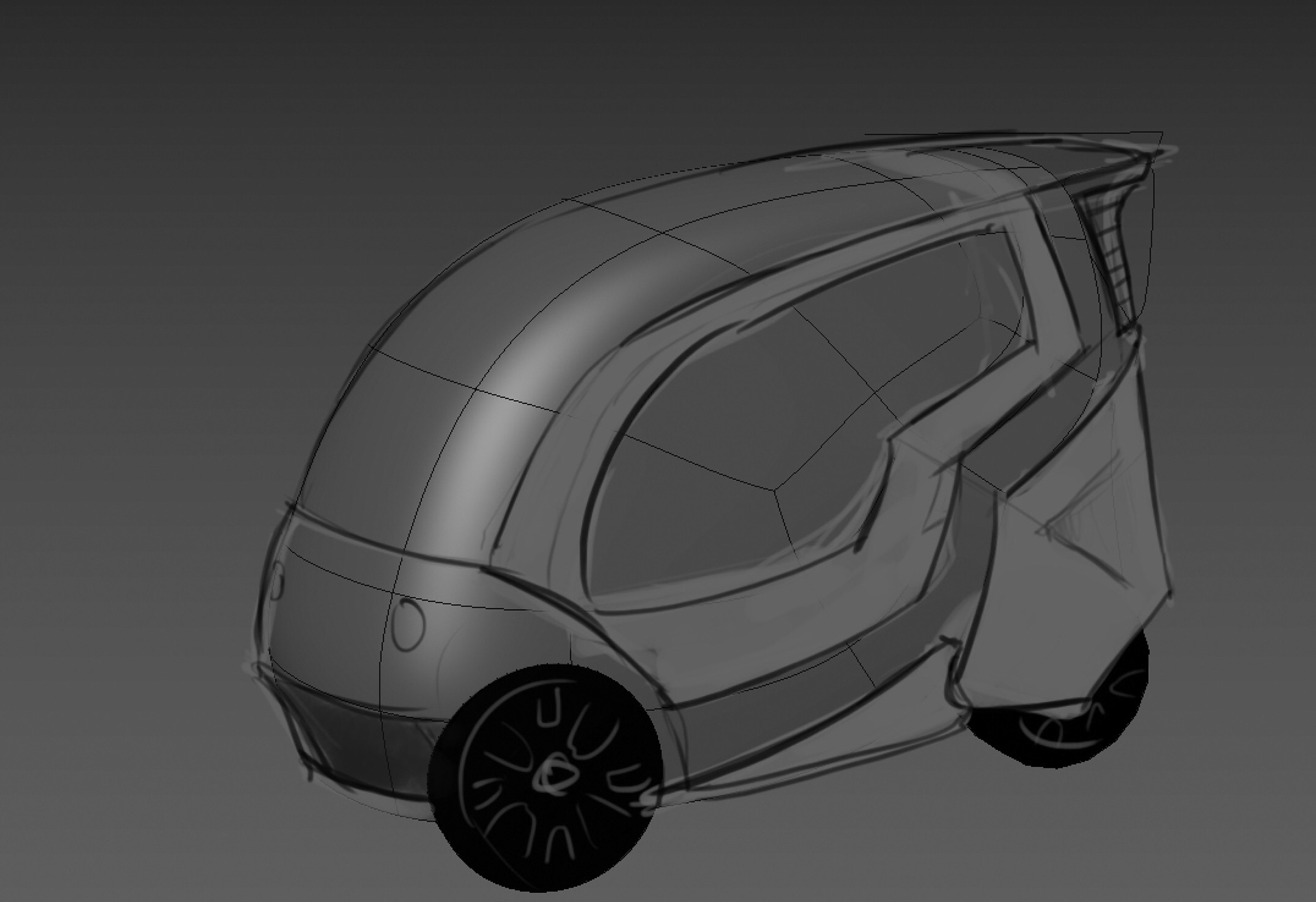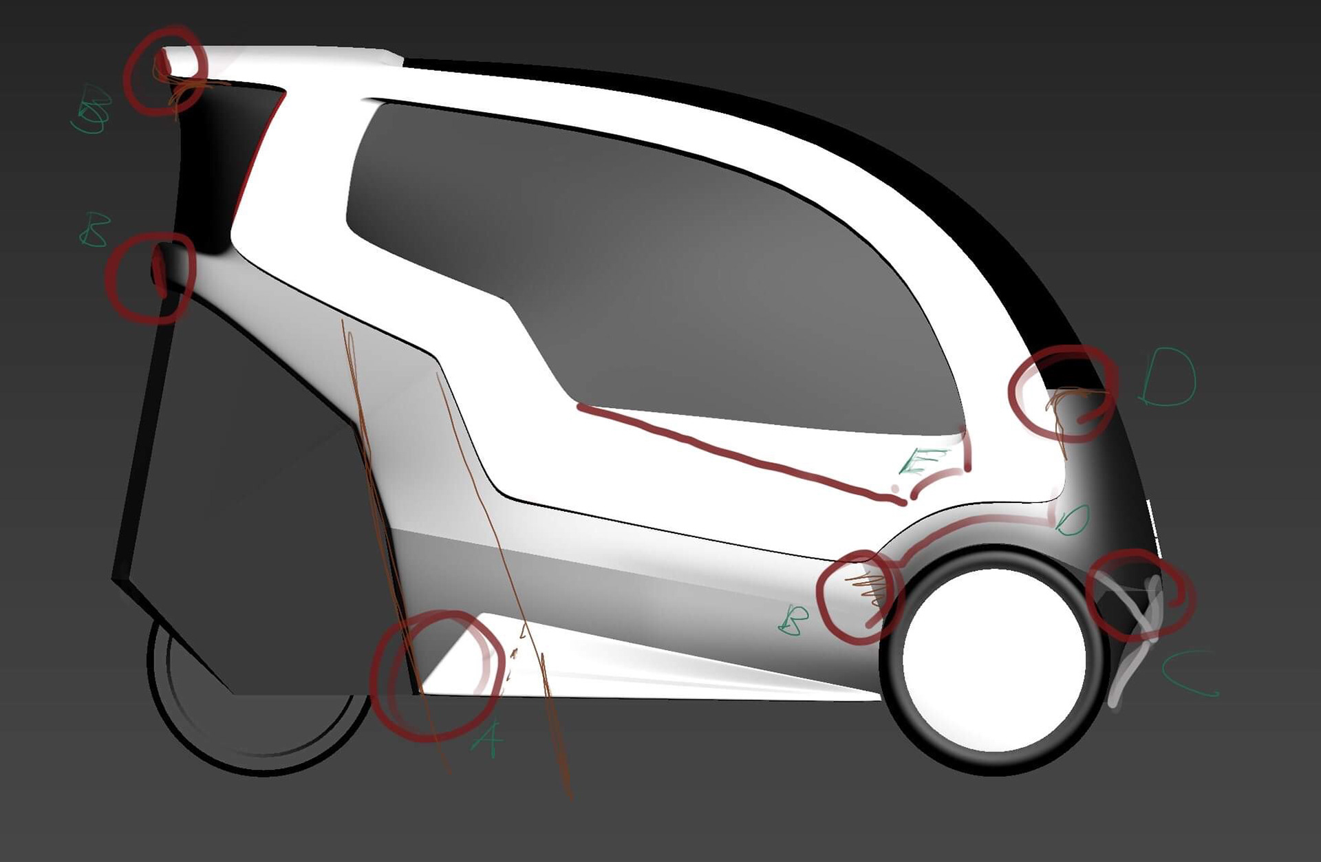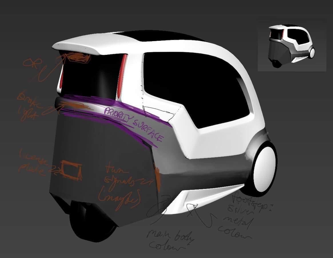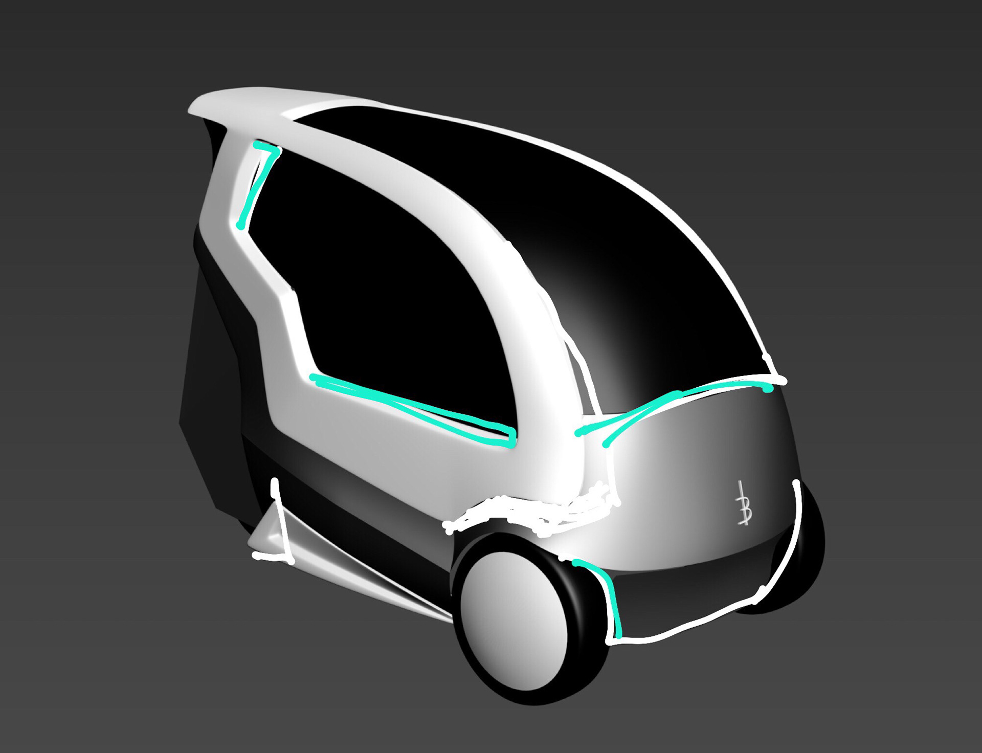 Our class was approached by Kabinescooter.dk, a Danish cabin scooter retailer, to reimagine their flagship product, the “Bach Delux,” for a youth demographic. Through market research and formal analysis of similar production and concept vehicles, our group settled on an archetype of personal mobility (discarding the antiquated “cabin scooter” name), with emphasis on young adult commuters (age 18-25) as well as broader market appeal. Then, following the focus of the course, we ideated and iterated extensively on the proposed exterior form of the vehicle, going through progressive stages of 2D and 3D development while taking into account client feedback and production limitations. The final concept, BEAN, emphasizes a sleek, urban, and postmodern aesthetic mixed with Vespa-esque storytelling which the client responded very favourably to. Collaboration with Victor Halgaard Madsen and Esther Lin. (Renderings courtesy of Victor.) “Form Development and Experiment,” DSKD (Denmark), March-April 2019.